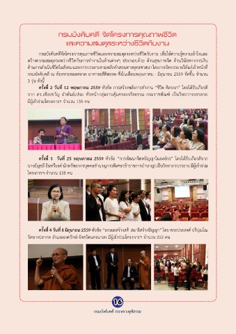 ด้านการดำาเนินชีวิตในสังคม และการบรรยายตามหลักคำาสอนทางพุทธศาสนา โดยการจัดบรรยายให้แก่เจ้าหน้าที่