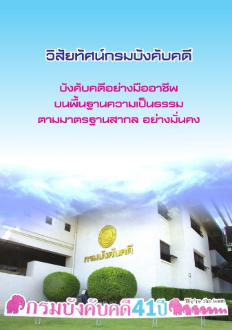 ปกหน้าใน ปกหลังใน วิสัยทัศน์กรมบังคับคดี บังคับคดีอย่างมืออาชีพ บนพื้นฐานความเป็นธรรม ตามมาตรฐานสากล อย่างมั่นคง cover ������-������ new20-09-59.indd 1 9/20/16 8:51 PM
