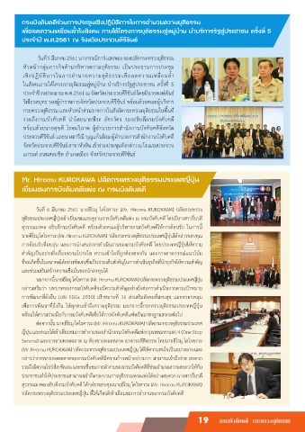 วันที่ 6 มีนาคม 2561 นายฮิโรมุ โคโรคาวะ (Mr. Hiromu KUROKAWA) ปลัดกระทรวง
