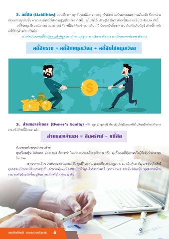 2. หนี้สิน (Liabilities) หมายถึง ภาระผูกพันของกิจการ ภาระผูกพันดังกล่าวเป็นผลของเหตุการณ์ในอดีต ซึ่งการจ่าย