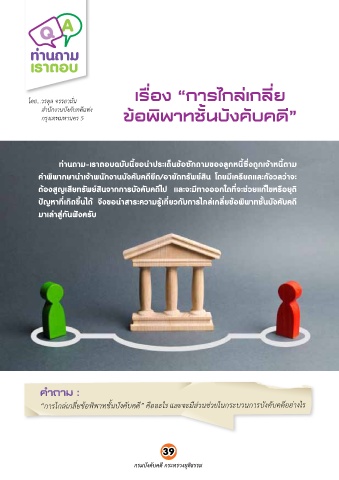 ปัญหาที่เกิดขึ้นได้ จึงขอนำาสาระความรู้เกี่ยวกับการไกล่เกลี่ยข้อพิพาทชั้นบังคับคดี