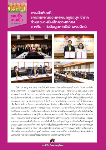 (Debtor Data Center) และให้ความสำาคัญกับการเชื่อมโยงข้อมูลหน่วยงานต่าง ๆ ซึ่งเป็นหน่วยงานทางทะเบียน