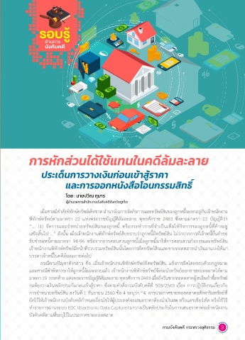 จะต้องวางเงินหลักประกันก่อนเข้าสู้ราคา ซึ่งตามค�าสั่งกรมบังคับคดที่ 503/2560 เรื่อง การปฏิิบติงานเกี่ยวกับ