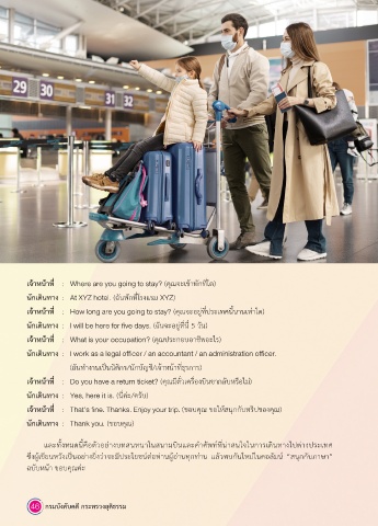 เจ้าหน้าที่ : How long are you going to stay? (คุณจะอยู่ที่ประเทศนี้นานเท่าใด)