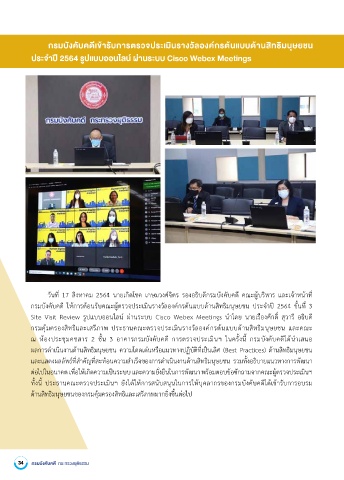Site Visit Review รูปแบบออนไลน์ ผ่านระบบ Cisco Webex Meetings น�าโดีย นายเรืองศักดี� สุวารี อธิิบดี ี
