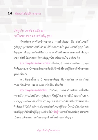สัญญาทุกสัญญาจะต้องมีวัตถุประสงค์หรือเป้าหมายของการทำาสัญญา