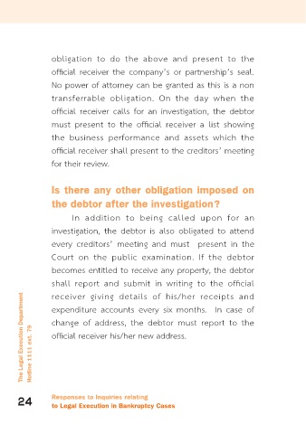 The Legal Execution Department Hotline 1111 ext. 79 change of address, the debtor must report to the