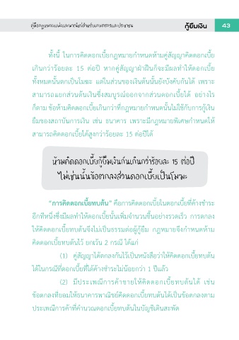ทั้งนี้ ในการคิดดอกเบี้ยกฎหมายกำาหนดห้ามคู่สัญญาคิดดอกเบี้ย