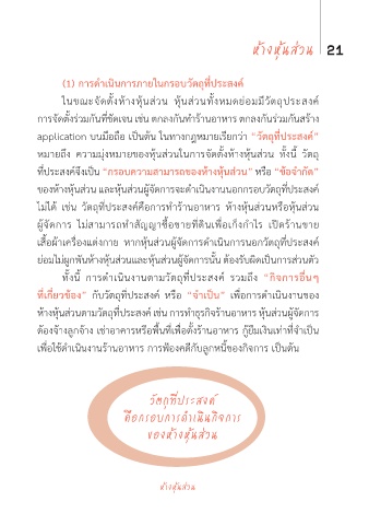 ไม่ได้ เช่น วัตถุที่ประสงค์คือการทำาร้านอาหาร ห้างหุ้นส่วนหรือหุ้นส่วน