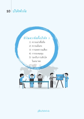 10 บริษัทจํำ�กัด ทํำ�ไมควรจัดตั้งบริษัท ? 1) ความน่าเชื่อถือ 2) ความมั่นคง 3) การลดความเสี่ยง 4) การระดมทุน 5) รองรับการเติบโต ในอนาคต คู่มือบริษัทจํำ�กัด