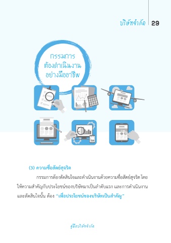 กรรมการต้องตัดสินใจและดำาเนินงานด้วยความซื่อสัตย์สุจริต โดย