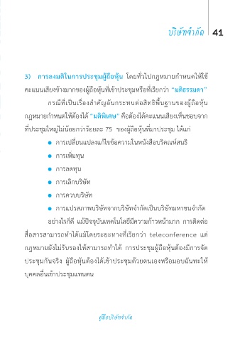 3) การลงมติในการประชุมผู้ถือหุ้น โดยทั่วไปกฎหมายกำาหนดให้ใช้