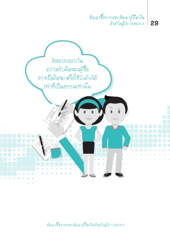 สัญญาซื้อขายและสัญญากู้ ยืมเงิน สํำาหรับผู้ประกอบการ 29 ข้อตกลงยกเว้น ความรับผิดของผู้ซื้อ อาจเป็นโมฆะหรือใช้บังคับได้ เท่าที่เป็นธรรมเท่านั้น สัญญาซื้อขายและสัญญากู้ยืมเงินสํำาหรับผู้ประกอบการ