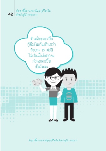 สัญญาซื้อขายและสัญญากู้ ยืมเงิน 42 สํำาหรับผู้ประกอบการ ห้ามคิดดอกเบี้ย กู้ยืมเงินกันเกินกว่า ร้อยละ 15 ต่อปี ไม่เช่นนั้นข้อตกลง ส่วนดอกเบี้ย เป็นโมฆะ สัญญาซื้อขายและสัญญากู้ยืมเงินสํำาหรับผู้ประกอบการ