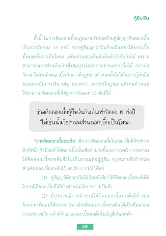 ทั้งนี้ ในการคิดดอกเบี้ยกฎหมายกำาหนดห้ามคู่สัญญาคิดดอกเบี้ย