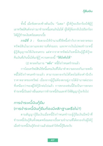 ชำาระหนี้เงินกู้คืนทั้งหมดพร้อมดอกเบี้ยตามจำานวนที่ได้ตกลงกับผู้ให้กู้