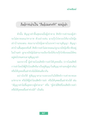 แก่ทายาท หรือให้ผู้เช่าโอนสิทธิการเช่า หรือให้บุคคลอื่นเช่าช่วงได้ เช่น