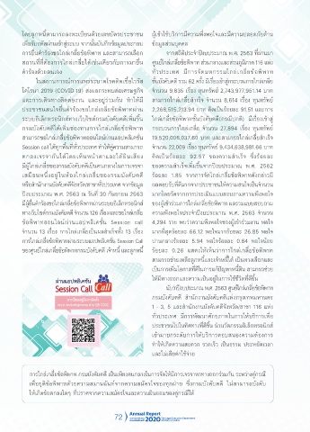 Session call ได้ทุกพื้นที่ทั่วประเทศ ท�าให้คู่ความสามารถ จ�านวน 22,009 เรื่อง ทุนทรัพย์ 9,434,638,981.66 บาท