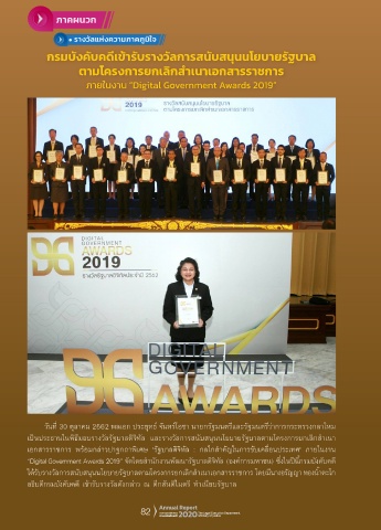 “Digital Government Awards 2019” จัดโดยส�านักงานพัฒนารัฐบาลดิจิทัล (องค์การมหาชน) ซึ่งในปีนี้กรมบังคับคดี