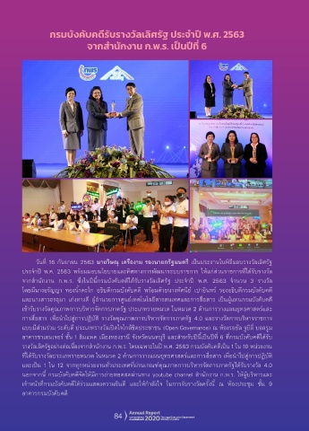 จากส�านักงาน ก.พ.ร. ซึ่งในปีนี้กรมบังคับคดีได้รับรางวัลเลิศรัฐ ประจ�าปี พ.ศ. 2563 จ�านวน 3 รางวัล