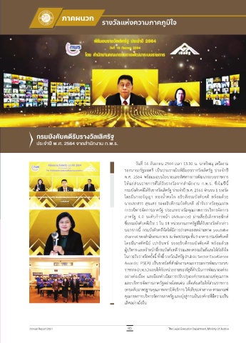 กรมบังคับคดีได้รับรางวัลเลิศรัฐ ประจำ�าปี พ.ศ. 2564 จำ�านวน 1 รางวัล